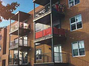 a residential use building, or the residential use portion of a mixed-use building, other than a townhouse or stacked townhouse containing four or more dwelling units each of which shall have access to above grade common halls, stairs, elevators, and yards.